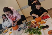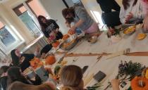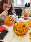 Uczniowie poinstruowani przez Panią Kasię wykonali rzeźby z dyni, wykorzystując techniki carvingu, a następnie umieszczali w nich kompozycje kwiatowe. Warsztaty udowodniły, że nasza młodzież jest niesamowicie kreatyna, pomysłowa i uzdolniona plastycznie. Wykonane prace są piękną ozdobą parapetów okiennych i stołów.